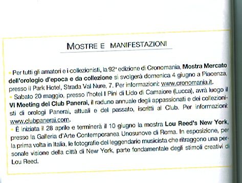We have to say thank you, to the Officine Panerai of Milan, for the t-shirts of their -Panerai Classic Yacht Challenge- (See 2006 Edition) sent to us, the editorial house Argò of Rome of the specialized monthly -L'Orologio-, for their Almanacs 2005 sent us and for the publication, at page 20 in the number 148 of June 2006, of a short article about the Meeting Simona Di Stefano (Simona Straps) and the Manifatture Firenze for the items sent us, the Zonin Group for the wines offered us at the dinner of saturday and Claudio Salvini, the boss of the hotel, for its availability.