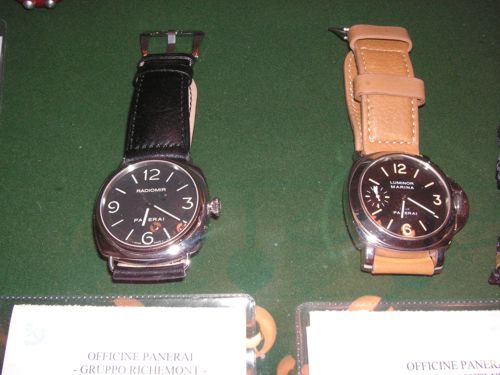 After the coming back at the hotel I Pini in Lido di Camaiore (Tuscany), in the afternoon, starts the exhibition. With the friend Filippo who, as you can see, is a supporter of Schwarzy... His Highness Mario with Ricciardo! In the main room of the hotel Piero with his sister Marina and Volker The Luminor Slytech-Daylight, ref. 5218-207/a, with the blue index. Probably only 11 units of this model have been made The vintage (1950's) Luminor, ref. 6152, of Mario The vintage helmet for diver (1960's) of Mirko Ermes, Piero, Jacopo, Mario, Fausto and Ricciardo Umberto on its Harley Davidson -883- Graham and Volker, with the helmet..., on the Harley Davidson -883- of Umberto The display of Fausto of Piero of Jacopo (Manifatture Firenze) Umberto with the new watch, with the 44mm brushed-polished steel case, the screwed case-back and the Eta 2824/2 automatic movement that, just from this year, is officially supplied like equipment of the Underwater Men and of the Commandos of the Italian Navy; the -MMT500- (Marina Militare Tested 500m), here in the -military- version (100 units tested and guaranteed until 500m (50atm-1600ft) of depth and the screwed case-back is engraved with the number of the individual scuba licence of every Italian Navy Scuba Diver Commandos) while, from the fall 2006, will be available also for the public the MMT500 in the -civilian- version, created and realized from himself and that will be distribuited in all over the the world, just by Umberto Panzeri, Viareggio (Tuscany)!