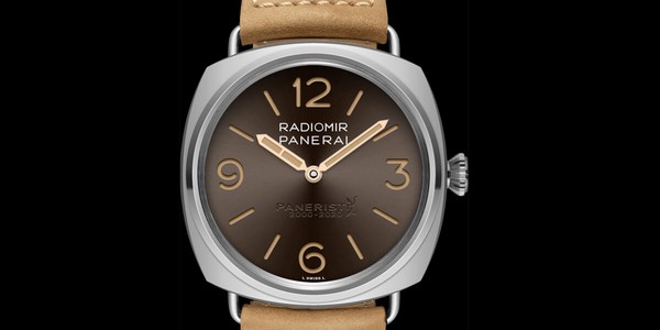 Per il 20mo Anniversario della comunità on-line Paneristi (2000-2020), Panerai ha presentato il Radiomir Venti (cassa 45mm acciaio, quadrante marrone a sandwich con effetto soleil, cal. man. P.6000 con 3 giorni di riserva di carica, ref. Pam 2020 ed edito, in soli 1.020 pezzi, ad euro 6.500,00)