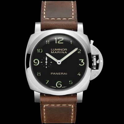 , 44mm steel case and bezel, black dial and brown calf strap with Pam strap system, cal. aut. P.9010, waterproof until 30 bar, euro 9.9 k.